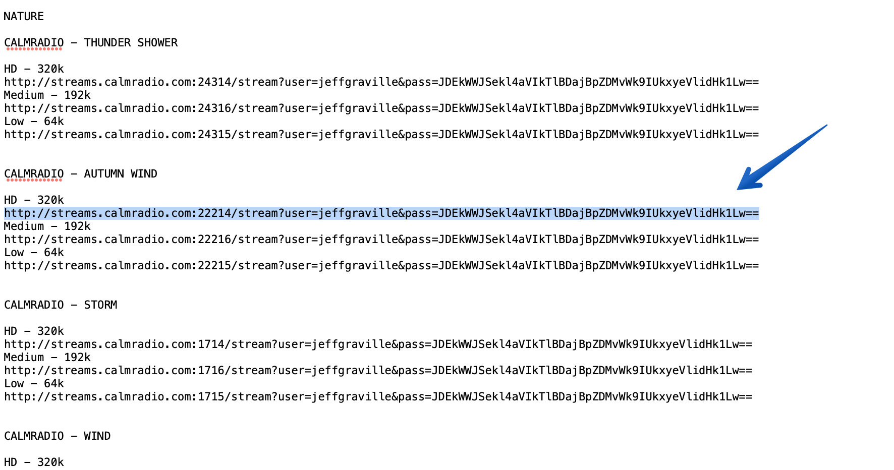 - Copy a Calm Radio channel URL from the list you downloaded earlier and paste it in to the “Presets” field