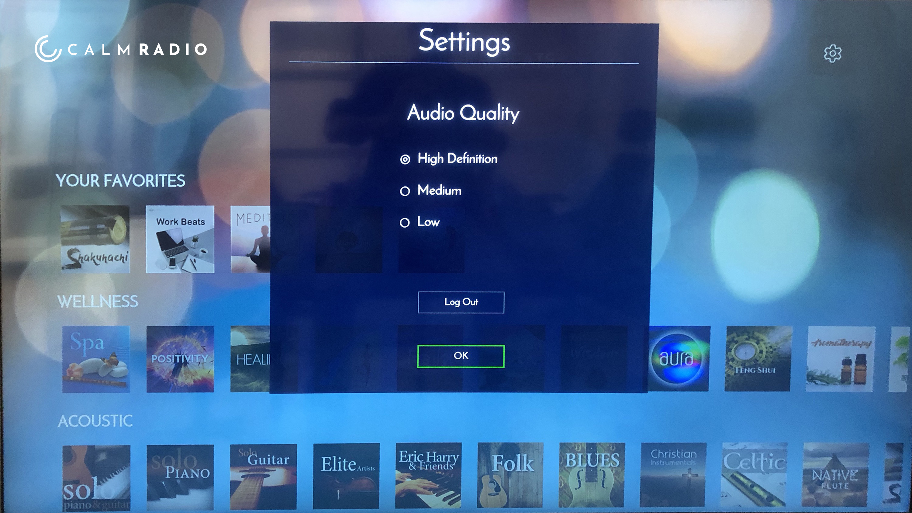 If your device is losing connectivity due to inconsistent or slow wifi/data, we highly recommend you enter the Calm Radio app’s Settings menu and reduce the audio quality setting.