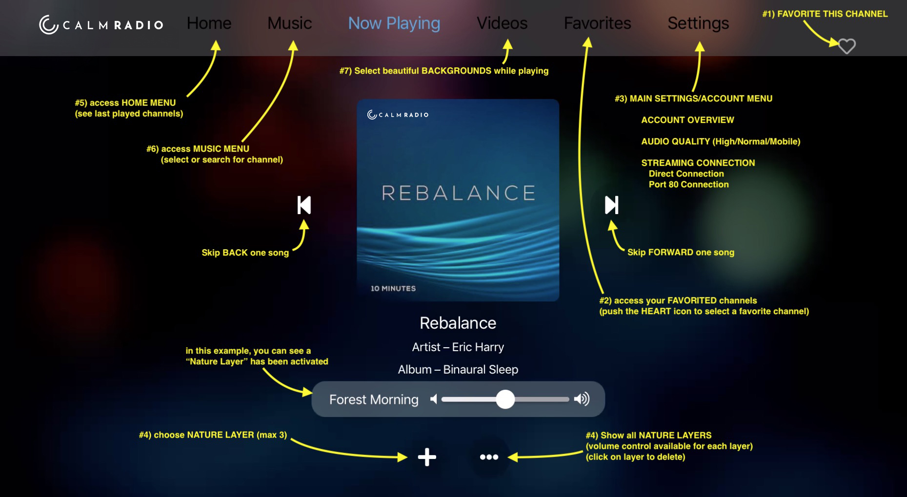 Our Apple TV 4 app features all the same amazing Multimix technology found on our website player with over 375+ music and Nature Sound channels.