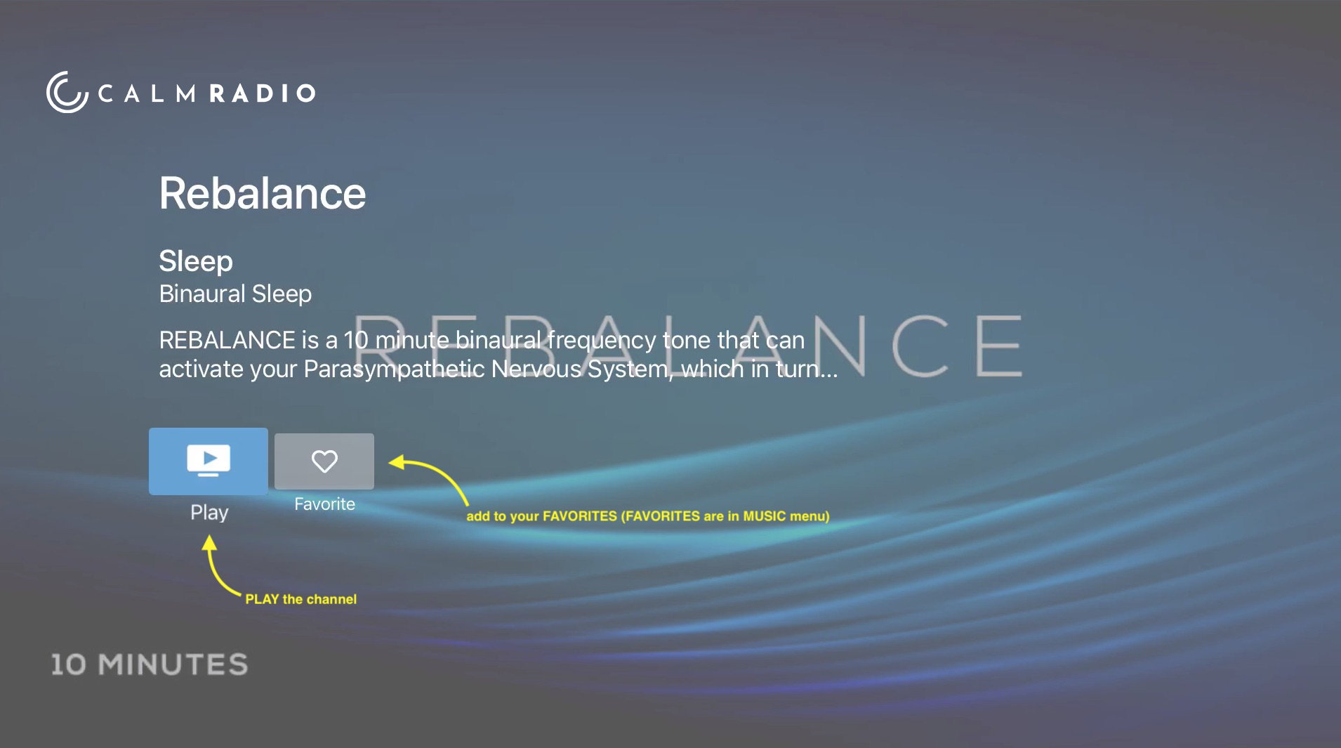 Now you can enjoy your Apple TV. Remember to go to the App Store to download and set up your Calm Radio app